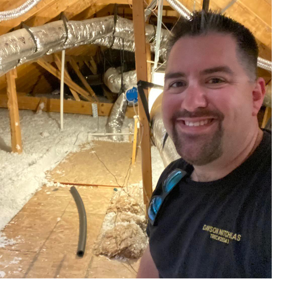 Dawson Nitcholas is always thorough and enjoys taking the time to inspect the home with the client, to answer questions, and to give advice about repairs. Mr. Nitcholas is a field-experienced inspector and follows national standards as well as those of the State of Texas.